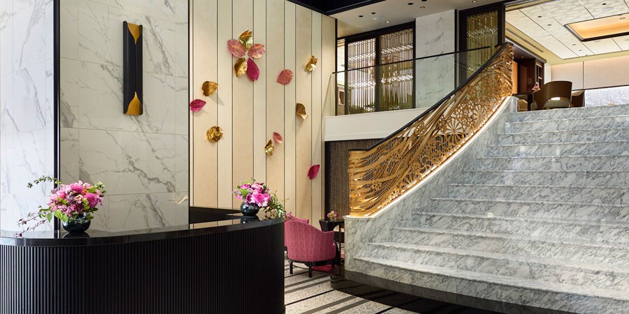 エントランス入ると階段が印象的ですが、この階段はカフェ用であって、ホテル宿泊者は利用しません。