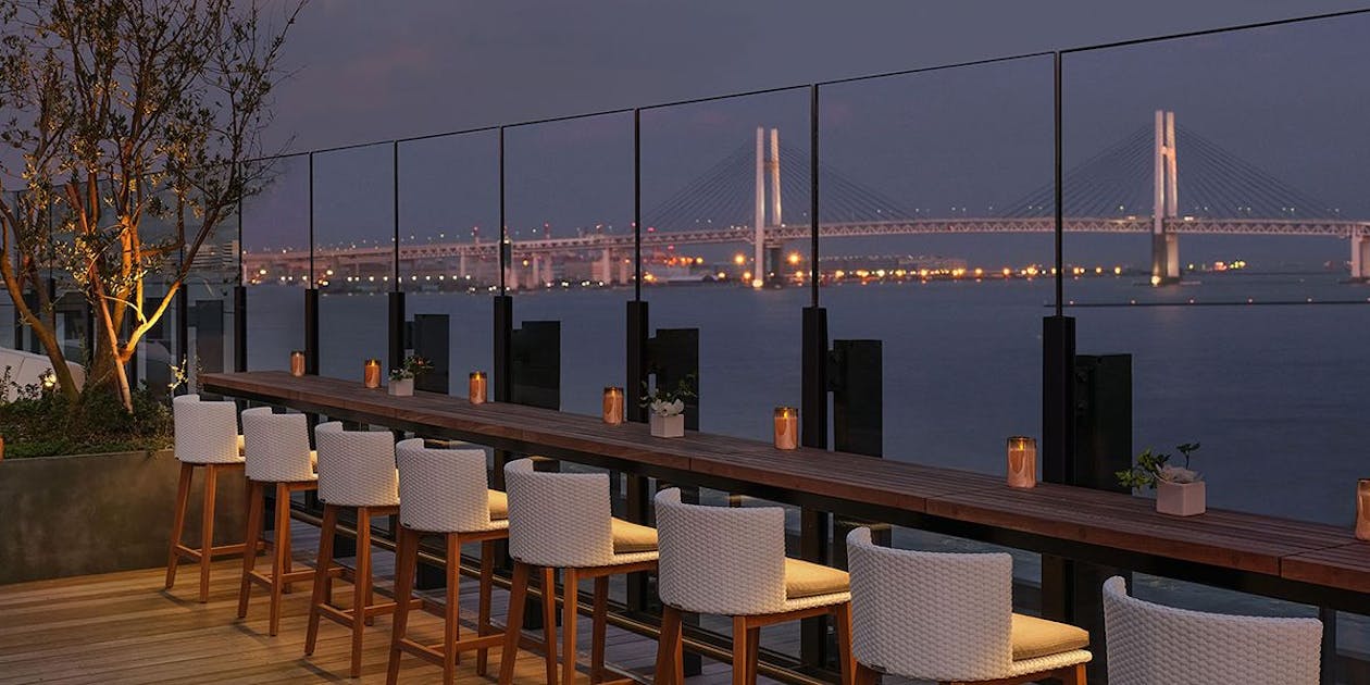みなとみらいの海の夜景を眺めながらのカクテルは最高です。